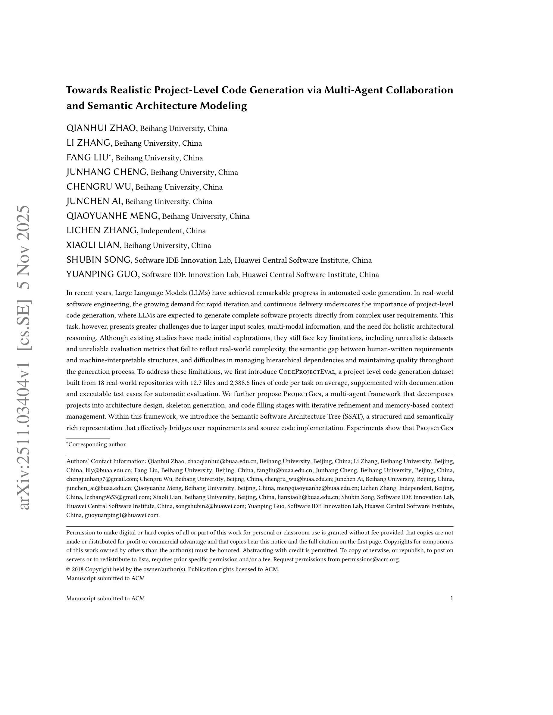- 提出了ProjectGen多代理框架,通过分解项目、引入语义软件架构树(SSAT)等方法解决挑战。