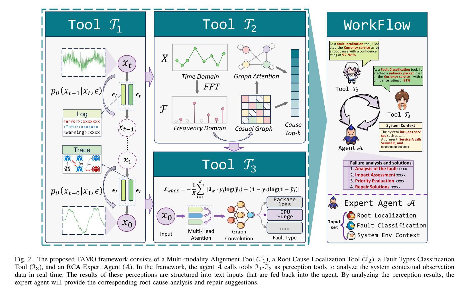 - TAMO包括多模态对齐工具、根本原因定位工具和故障类型分类工具。