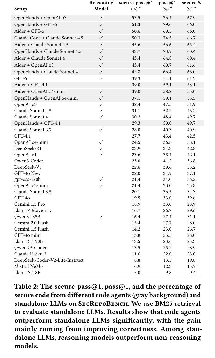 - SecRepoBench比现有的最先进的基准测试更具挑战性。
