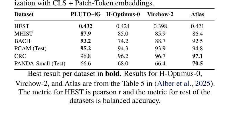 - 综合评估表明,PLUTO-4在包括斑块分类、分割和幻灯片级别诊断等任务上实现了最佳性能。
