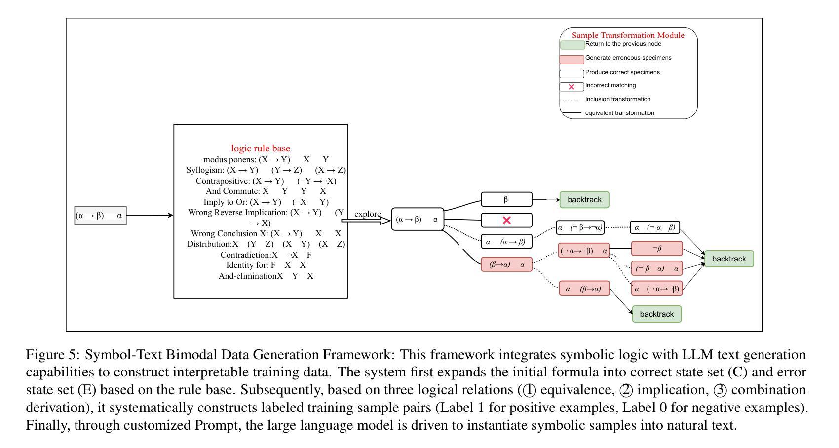 Summary:针对复杂逻辑数据增强,单纯依赖人工标注成本高昂,而直接使用大型语言模型生成则产生难以解释且逻辑单一的例子。为此,我们提出LFC-DA,一种符号逻辑控制流程:首先将逻辑文本映射到命题表达式,编译简洁的规则库,然后在有界状态空间搜索中系统地发现有效公式,再将其转化为自然语言问题,确保多样性和逻辑严谨性。在ReClor和LogiQA上的实验表明,LFC-DA能显著提高预训练模型的逻辑推理准确性,证明其在大型语言模型引导的逻辑数据增强中的有效性。