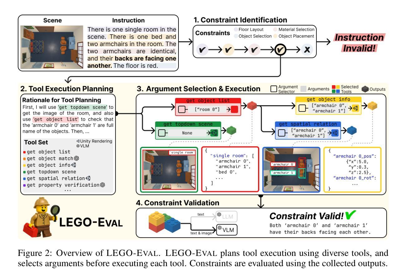 - LEGO-Eval通过多样的工具设计能更准确地评估场景与指令的对齐情况。