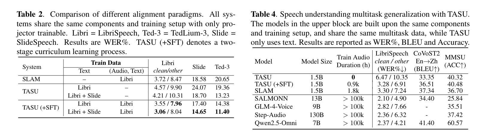 - TASU的零样本泛化能力可应用于广泛的语音理解任务。