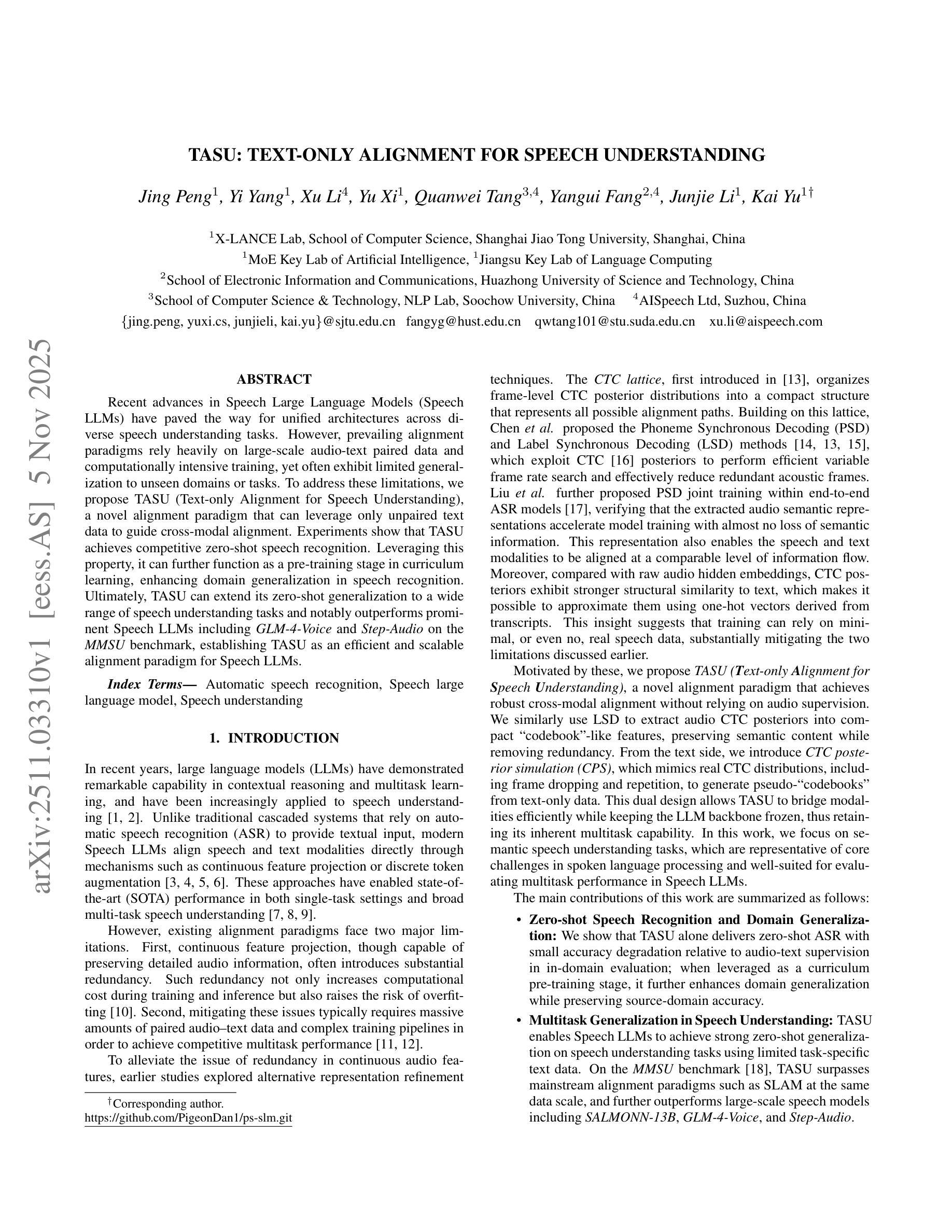 - TASU实现了具有竞争力的零样本语音识别。