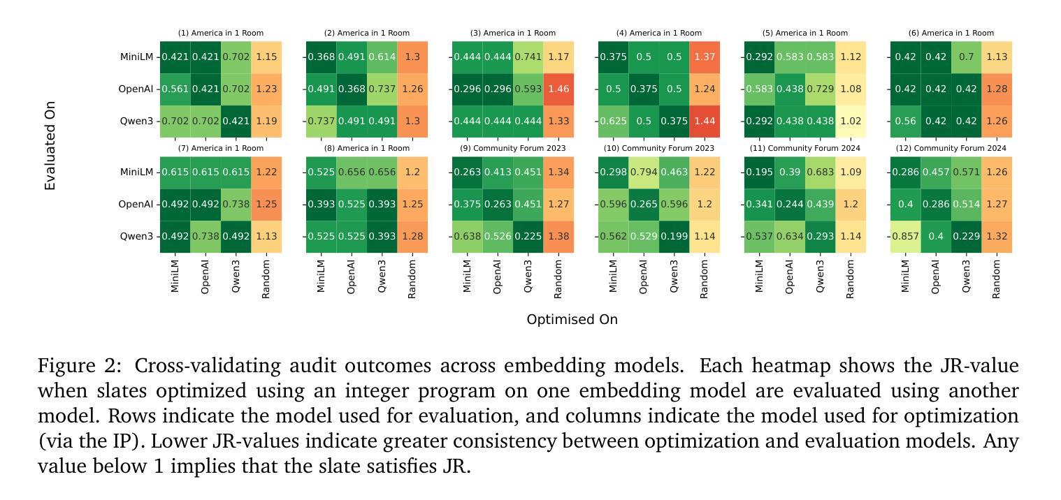 - 通过历史案例研究,评估了不同问题选择方式的代表性,包括主持人挑选、整数线性规划选择和大型语言模型生成的问题摘要。