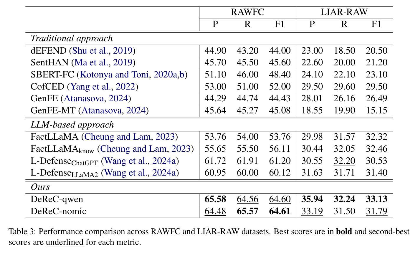 - DeReC在RAWFC和LIAR-RAW数据集上的性能显著优于现有方法。