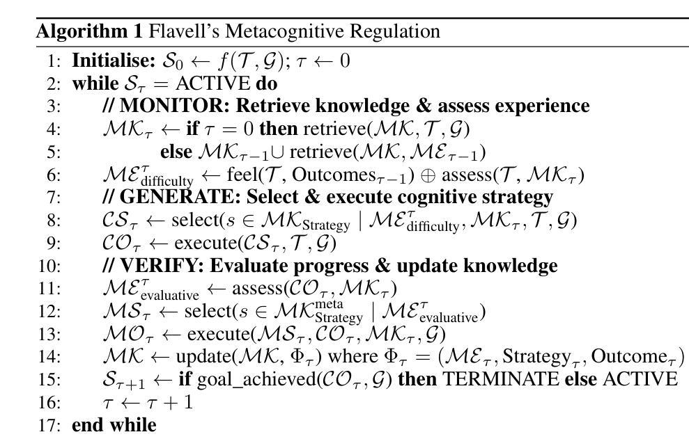 在遵循生成-验证范式的测试时间推理架构中,模型会迭代地完善或验证自身生成的输出,这种架构虽然重视生成和验证,但忽略了确定何时以及如何开始推理的监控过程。这种遗漏可能导致前缀主导陷阱,即模型过早地陷入非最优推理路径,并且很少恢复,造成大约20%的准确率损失。我们通过将弗拉维尔以及纳尔逊和纳伦斯的元认知理论形式化为计算规范来解决这一架构缺陷,提出了监控-生成-验证(MGV)框架。MGV通过添加明确的监控来扩展生成-验证范式,在生成开始之前捕获元认知体验(从难度评估到信心判断),并通过验证反馈来完善未来的监控。尽管我们没有提供实证验证,但这项工作提供了基础元认知理论的首次系统性计算翻译,为理解推理系统失败提供了原则性的词汇,并为未来的测试时间推理设计提出了具体的架构干预措施。