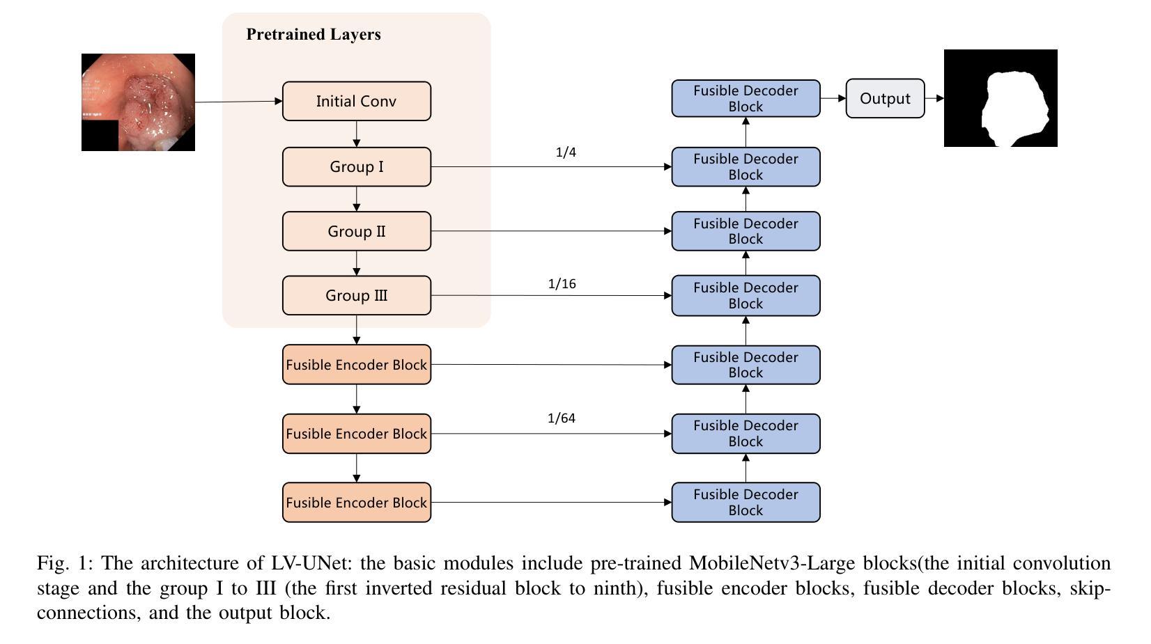 - LV-UNet模型利用预训练MobileNetv3-Large骨干网络和融合模块,简化模型复杂度。