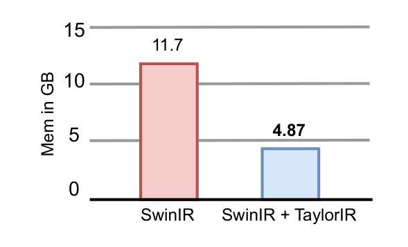 Transformer-based architectures have recently advanced the image reconstruction quality of super-resolution (SR) models. Yet, their scalability remains limited by quadratic attention costs and coarse patch embeddings that weaken pixel-level fidelity. We propose TaylorIR, a plug-and-play framework that enforces 1x1 patch embeddings for true pixel-wise reasoning and replaces conventional self-attention with TaylorShift, a Taylor-series-based attention mechanism enabling full token interactions with near-linear complexity. Across multiple SR benchmarks, TaylorIR delivers state-of-the-art performance while reducing memory consumption by up to 60%, effectively bridging the gap between fine-grained detail restoration and efficient transformer scaling.