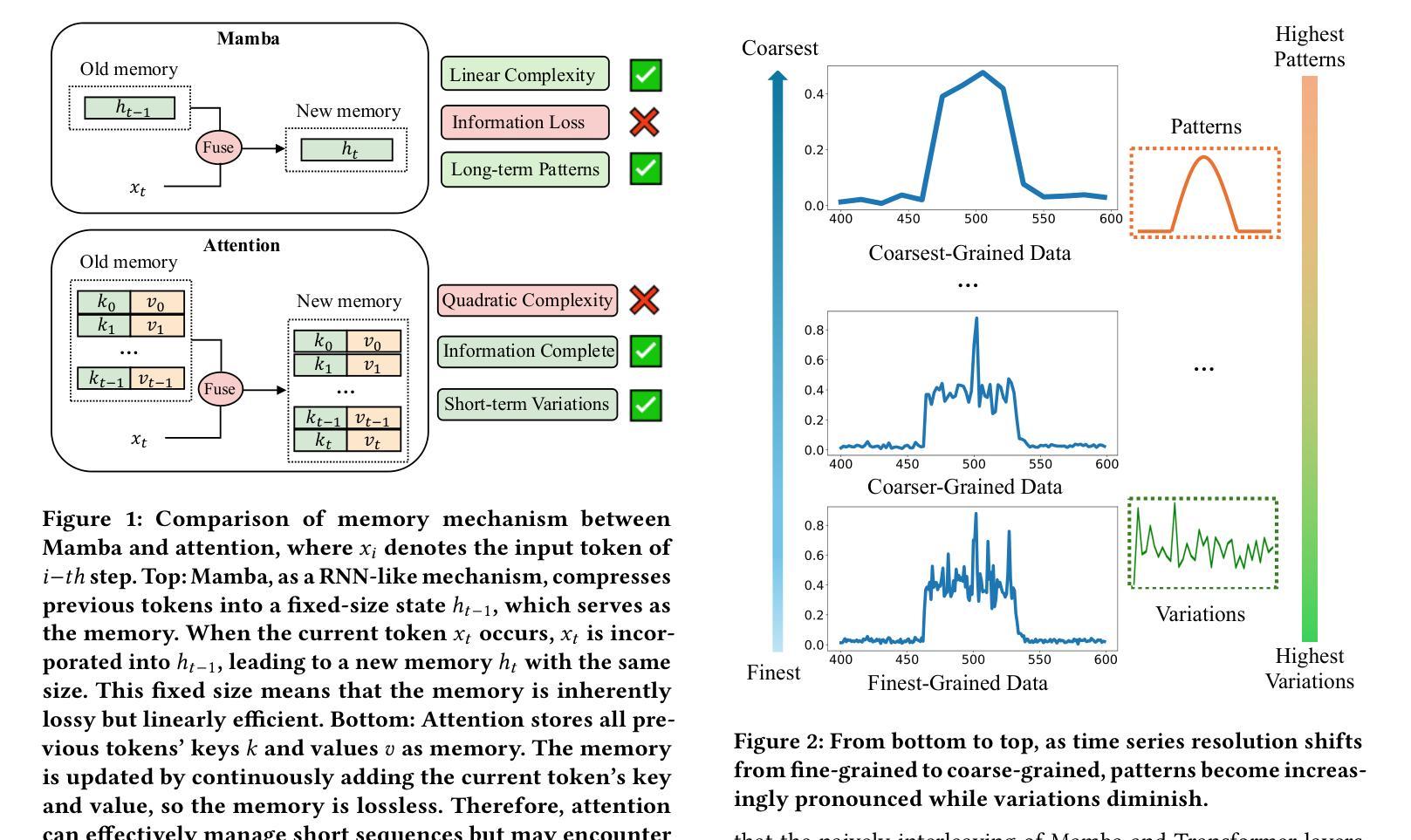 - Mamba擅长捕捉长期结构,而Transformer更擅长建模短期动态。