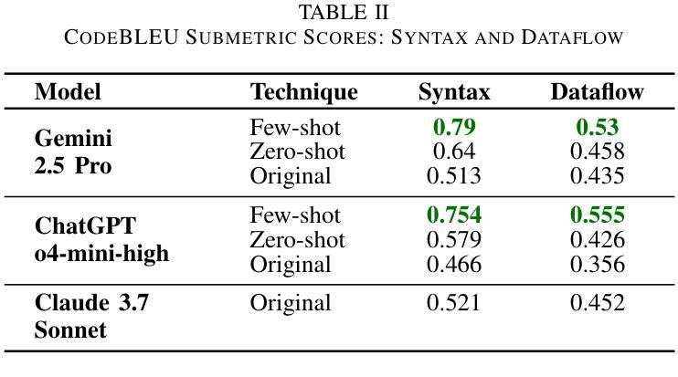 - 研究表明,采用少提示策略的模型在SDV代码生成方面表现最佳,能够基于定量指标调整答案以符合期望。