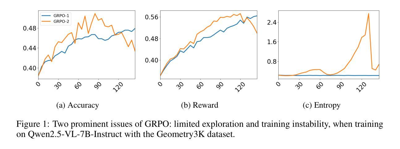 - Group Relative Policy Optimization(GRPO)在复杂推理任务中面临有限探索和训练不稳定的问题。