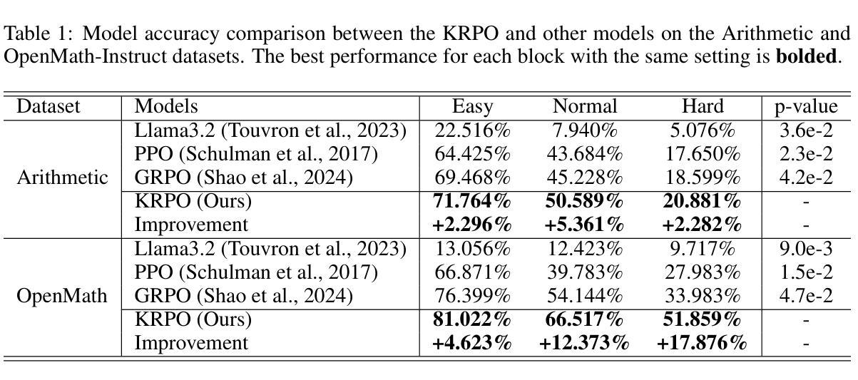 - KRPO提高了GRPO在动态奖励信号难以建模情况下的稳定性和性能。