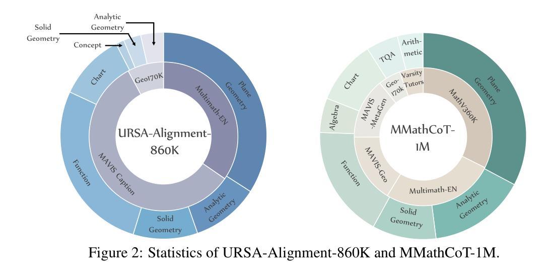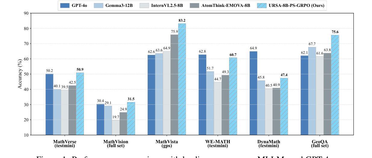 - 提出URSA训练框架,并构建大型多模态推理数据集MMathCoT-1M用于训练MLLM模型URSA-8B。