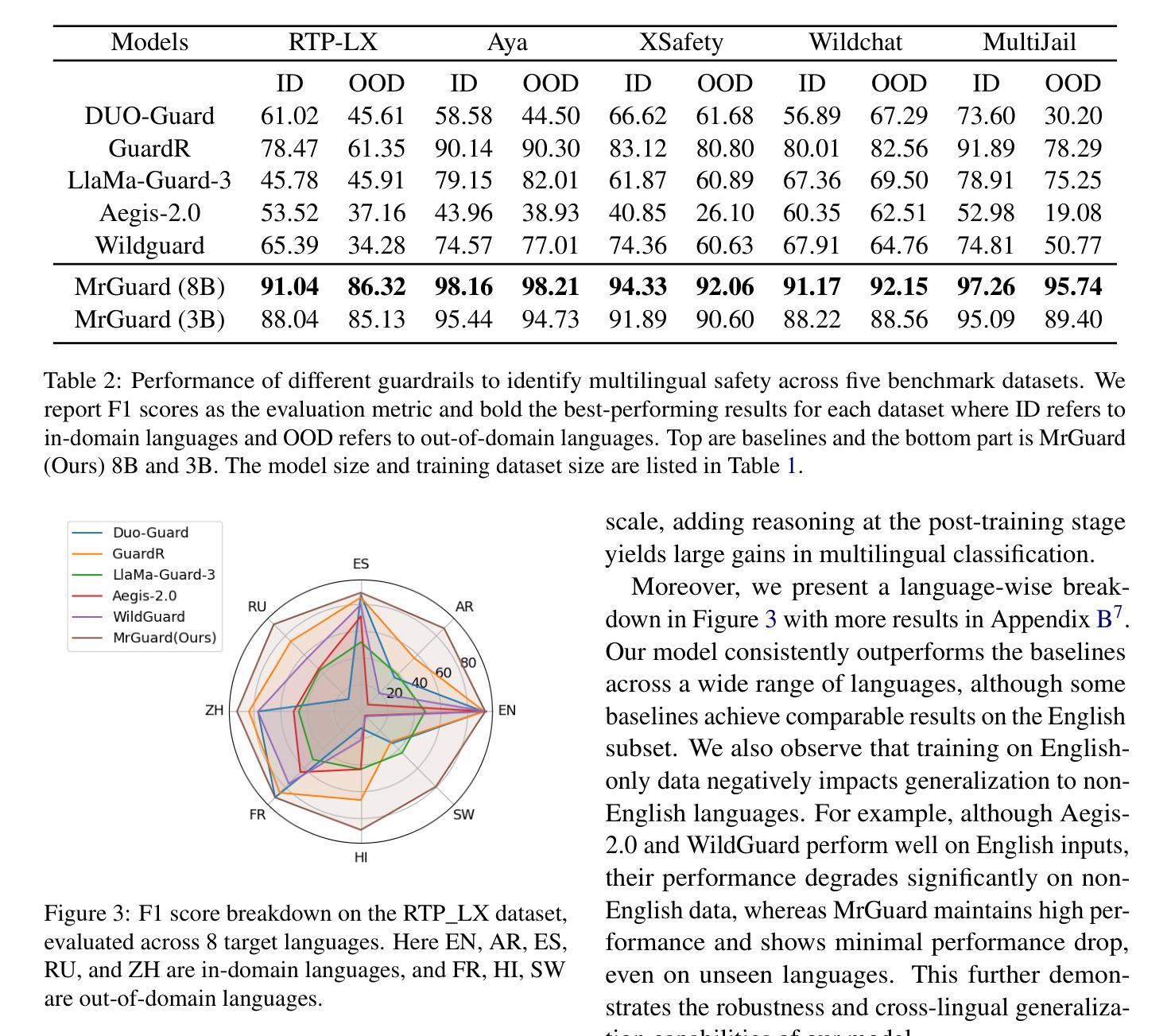 - 实验证明,该防护栏在域内和域外语言的性能均超过现有方法,且具备稳健性。