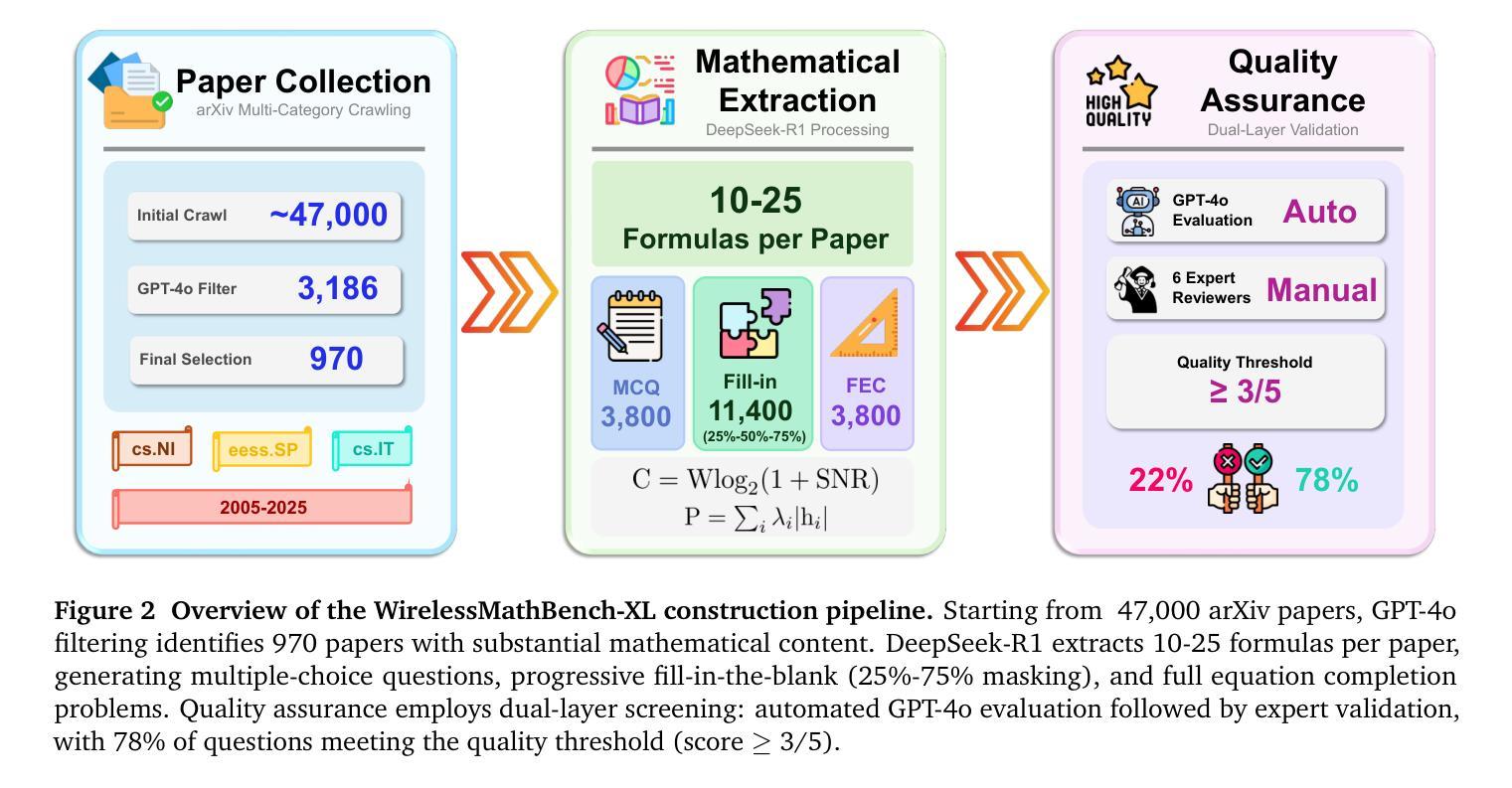 - 构建了WirelessMathBench-XL基准测试,包含来自970篇论文的4,027个问题。