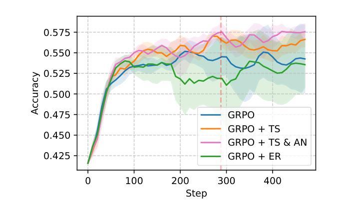 - 对比实验表明,GRPO-$λ$在多个数学推理数据集上的性能优于GRPO。