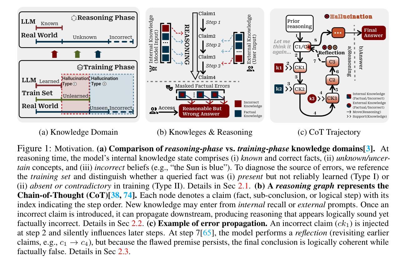 - 现有方法难以捕捉幻觉在推理链中的产生和演变。