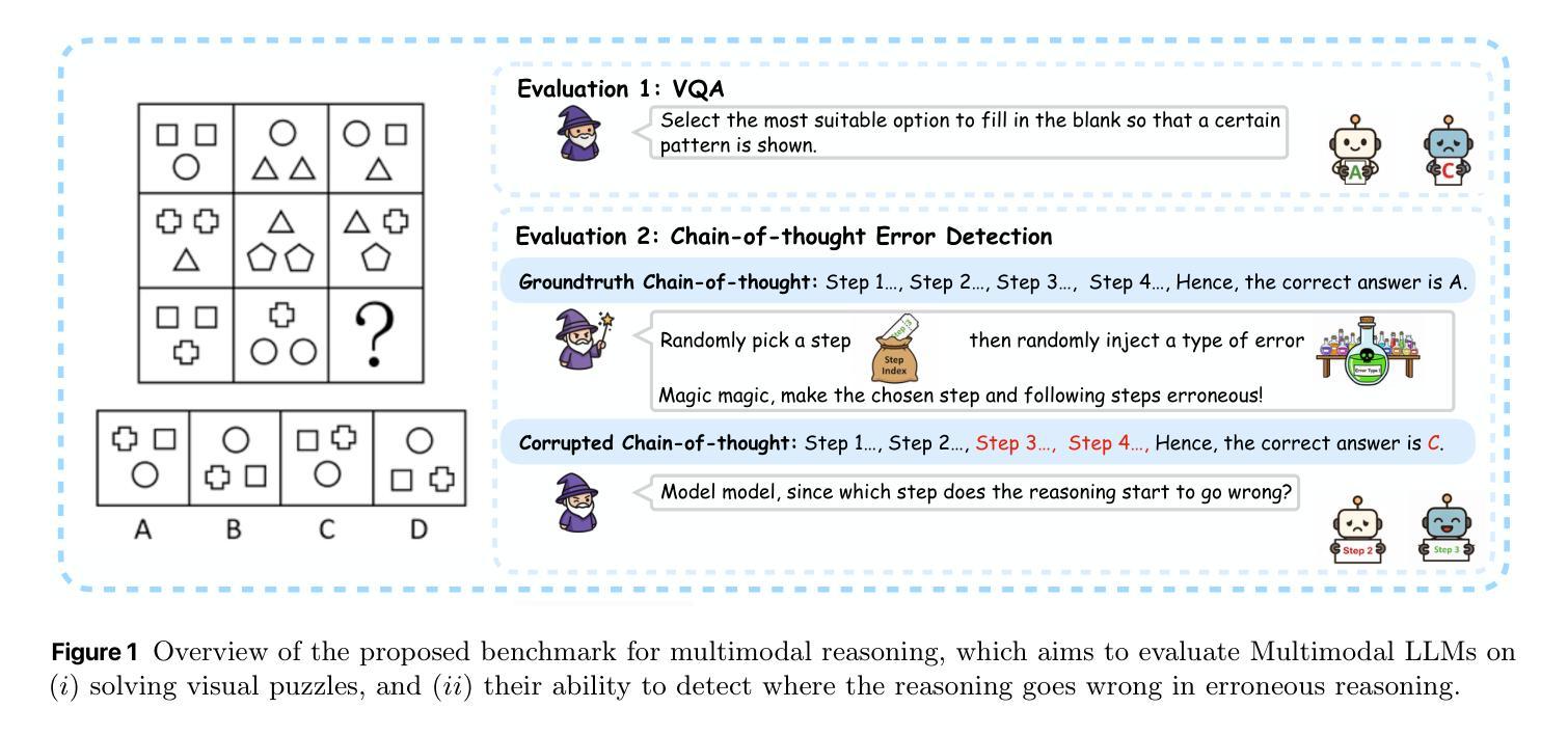 多模态大型语言模型(MLLMs)在视觉语言任务方面取得了显著的进步,但它们的推理过程有时仍然不可靠。我们引入了PRISM-Bench,这是一个基于谜题视觉挑战的基准测试,旨在评估模型不仅是否能解决问题,还能评估它们的推理过程。与以往仅测量最终答案准确性的评估不同,PRISM-Bench引入了一项诊断任务:给定一个视觉谜题和一个逐步思考过程(CoT),其中包含恰好一个错误,模型必须识别出第一个错误的步骤。这种设置能够精细地评估逻辑一致性、错误检测和视觉推理。PRISM-Bench中的谜题需要进行多步骤的符号、几何和类比推理,抵制基于表面模式匹配的捷径。对最新MLLMs的评估显示,流畅生成和忠实推理之间存在持续差距:能够产生合理思考过程的模型往往无法找出简单的逻辑错误。通过将答案生成与推理验证分开,PRISM-Bench为评估多模态推理能力提供了更锐利的视角,并强调了在开发可靠MLLMs时需要诊断评估协议。