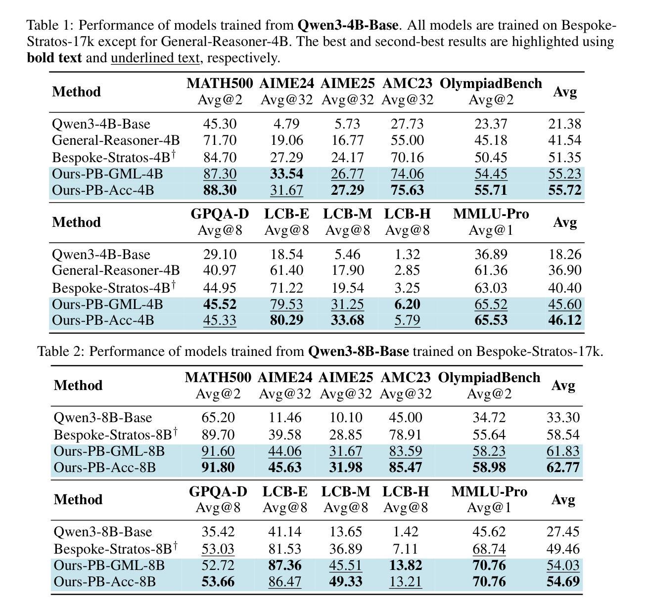 - 不同架构模型的性能差异,Qwen2.5-based模型较Llama-based表现更优。