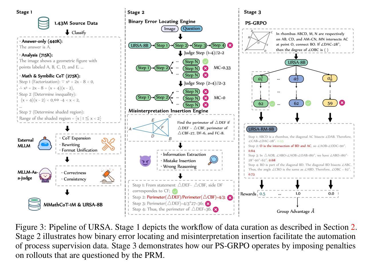 - 通过合成过程监督数据,强调逻辑正确性和感知一致性。引入DualMath-1.1M促进URSA-8B的训练。
