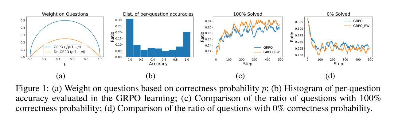 - 在二进制奖励设置下分析了GRPO,揭示了其问题级别难度偏差的局限性。