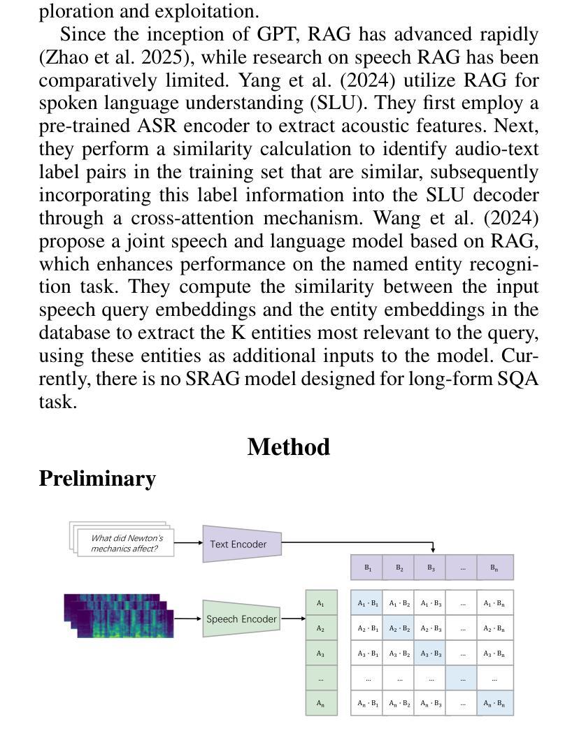 - 语音问答(SQA)领域虽取得进展,但处理长音频仍是挑战。