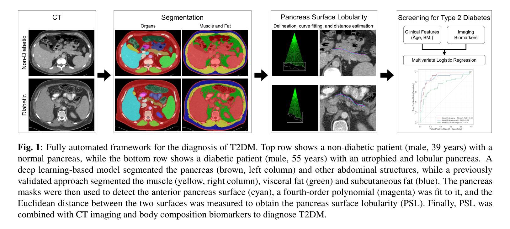 - 使用深度学习模型自动检测胰腺表面叶状结构,发现糖尿病患者值更高。