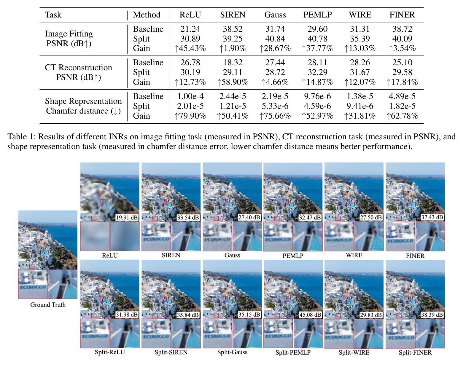 - 分裂层方法在保证计算效率的同时,有效提升了INR的性能。