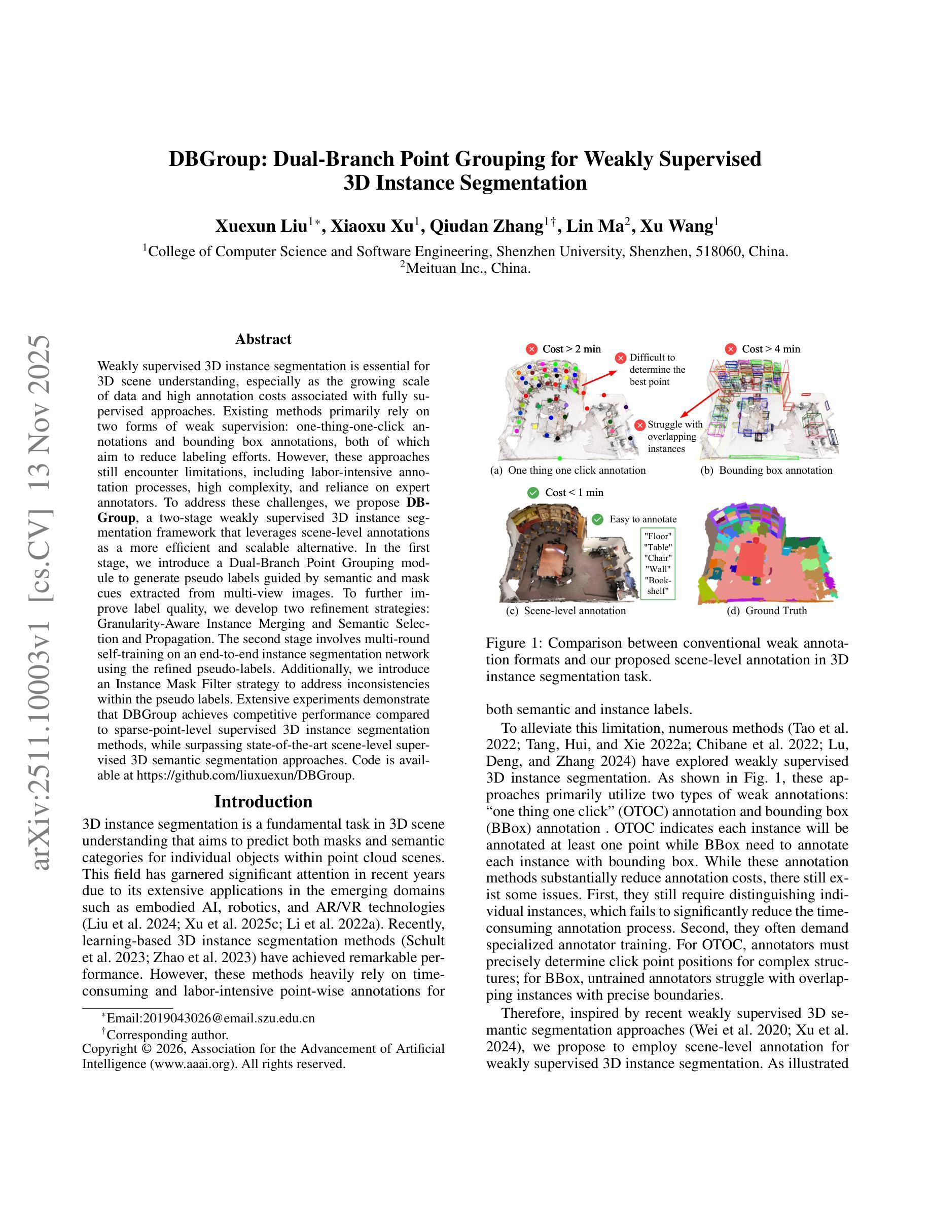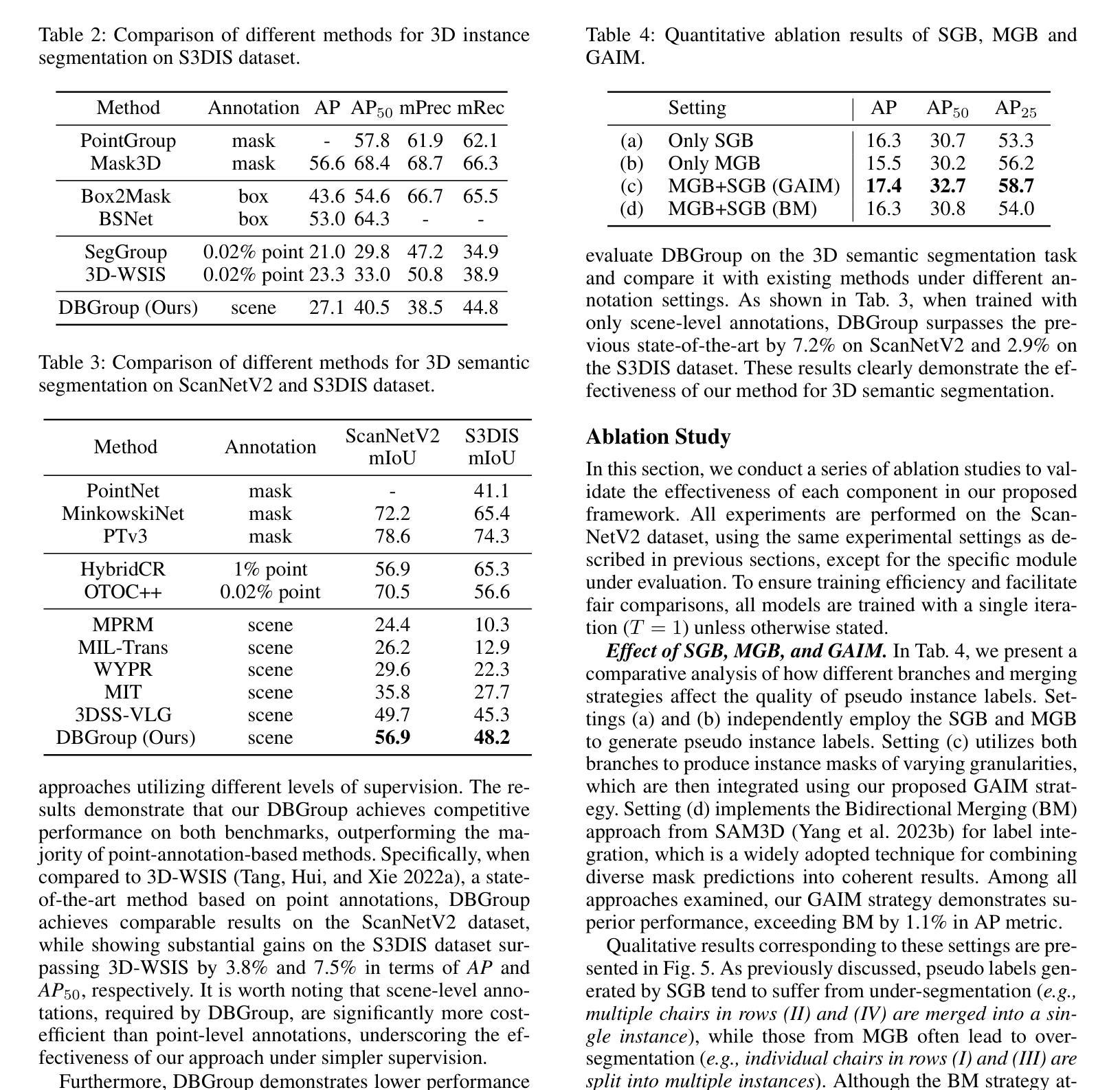 - DBGroup是一个两阶段的弱监督三维实例分割框架,旨在解决大规模数据下的标注成本高问题。