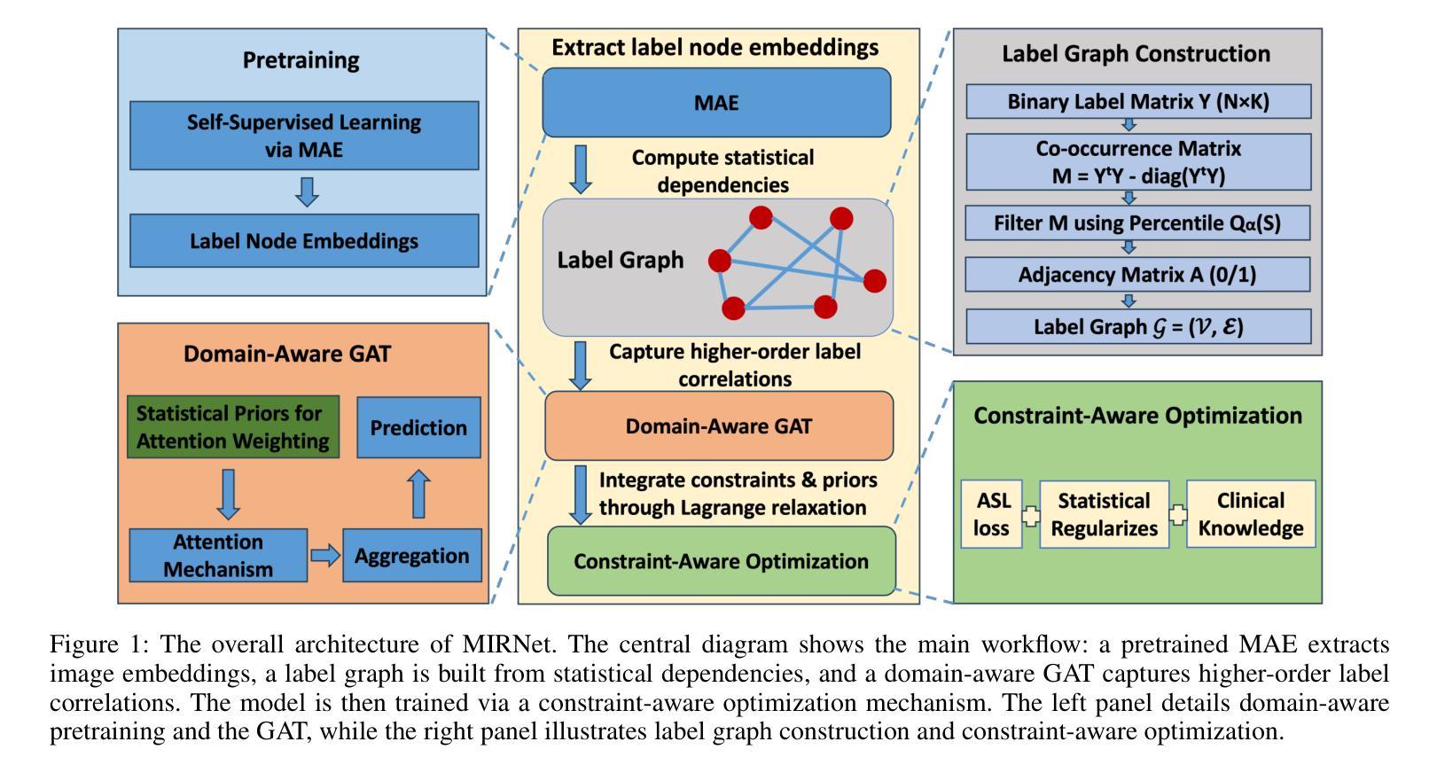 - MIRNet框架结合了自监督预训练和基于约束图的推理,用于医疗图像自动解读。