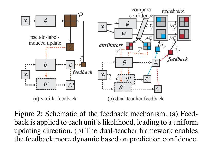 - 引入反馈机制,学生提供关于教师伪标签变化的反馈,促进标签调整。
