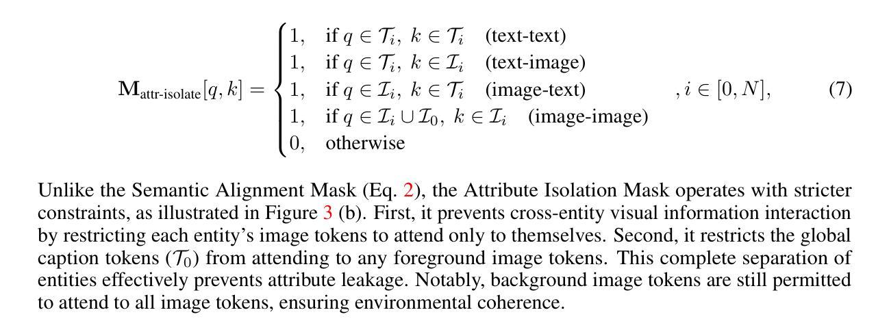 - 引入属性隔离注意力掩码机制,防止多实体场景中属性泄露。