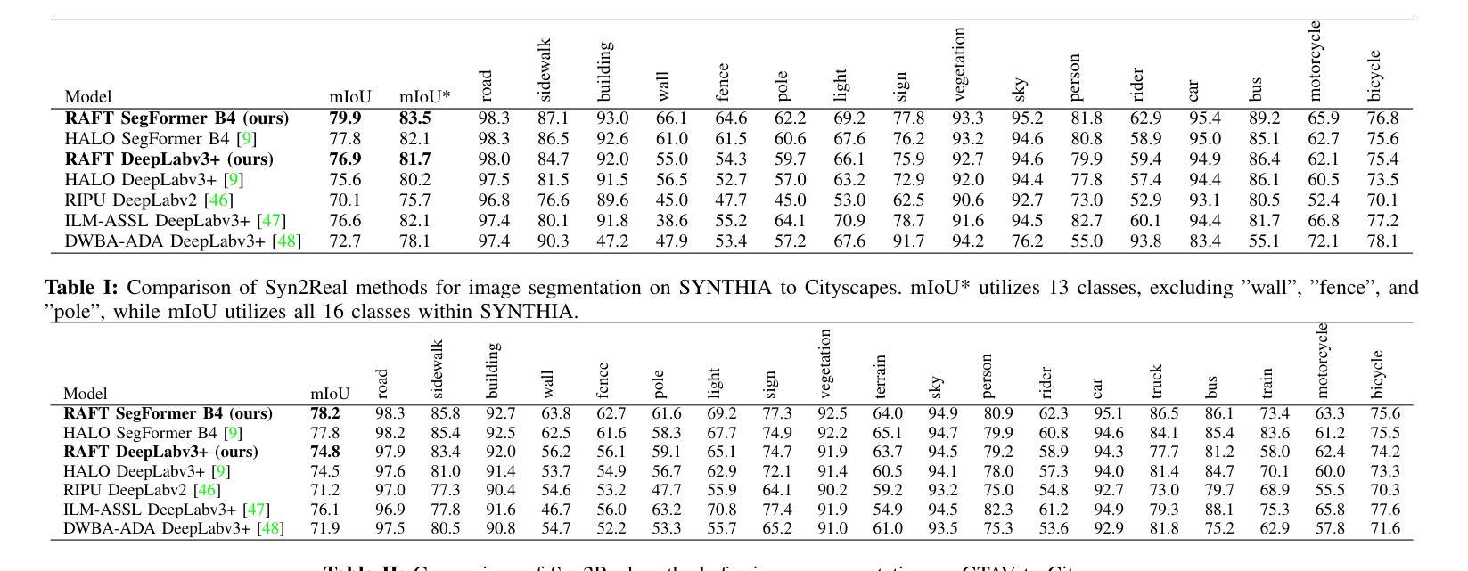 - RAFT在实际部署中也表现出优越性,例如在“Cityscapes→ACDC”基准测试上超越了HALO。