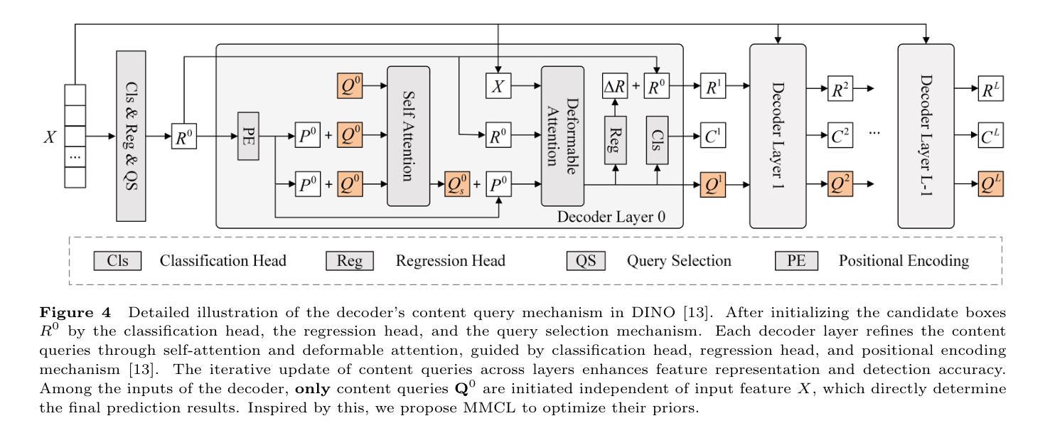 - 本文引入了多类最小边距对比学习(MMCL)框架,以纠正内容查询的分布,实现类内多样性和类间可分性的平衡。