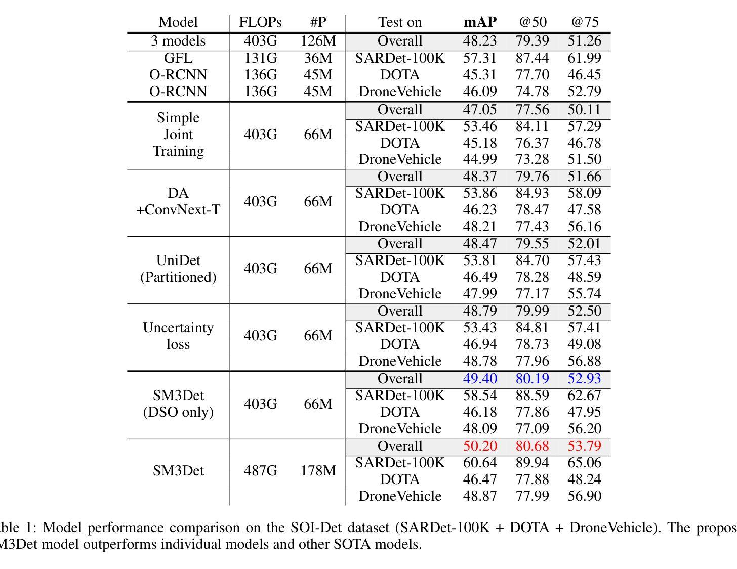 - 实验证明SM3Det在多个数据集上的表现优于专项模型。