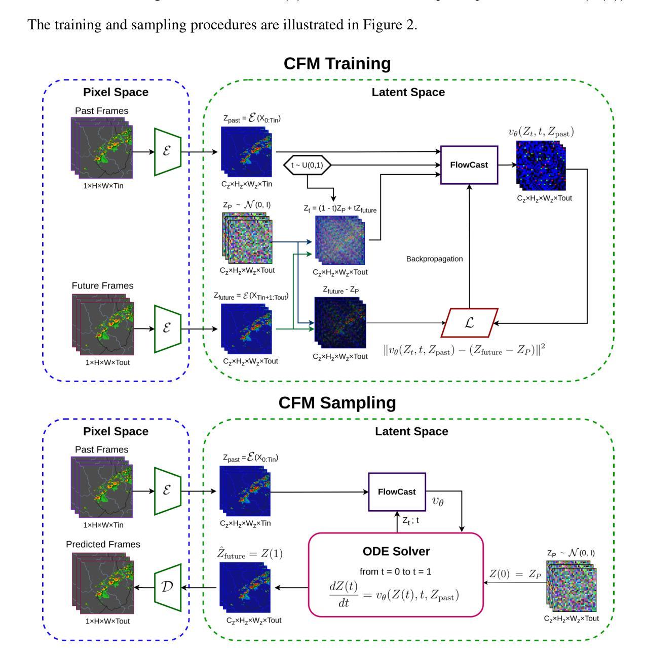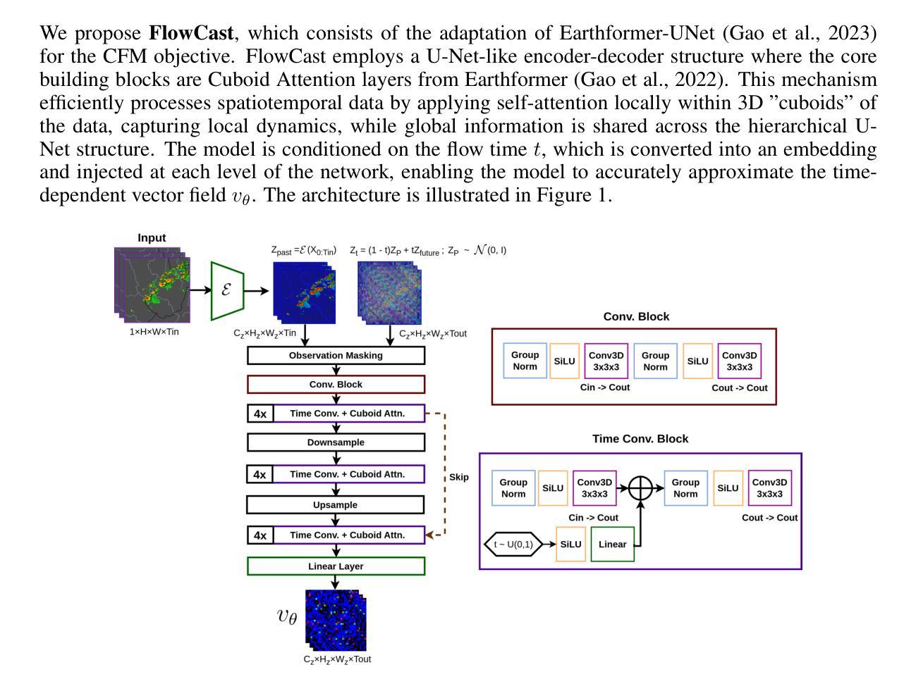 - FlowCast模型首次将条件流匹配(CFM)应用于降水预报。