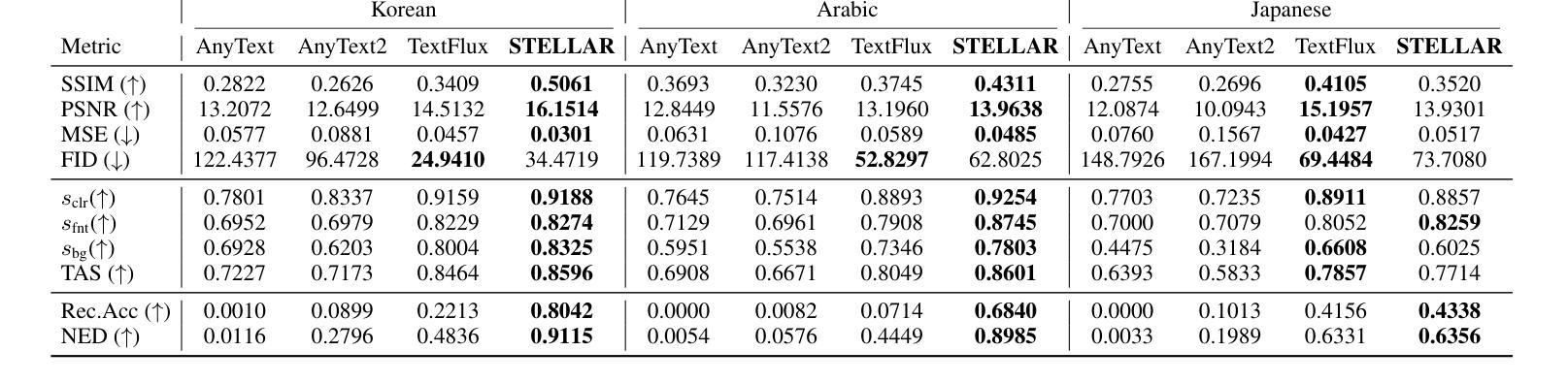 - 提出了新评估指标Text Appearance Similarity (TAS),用于独立测量字体、颜色和背景相似性。