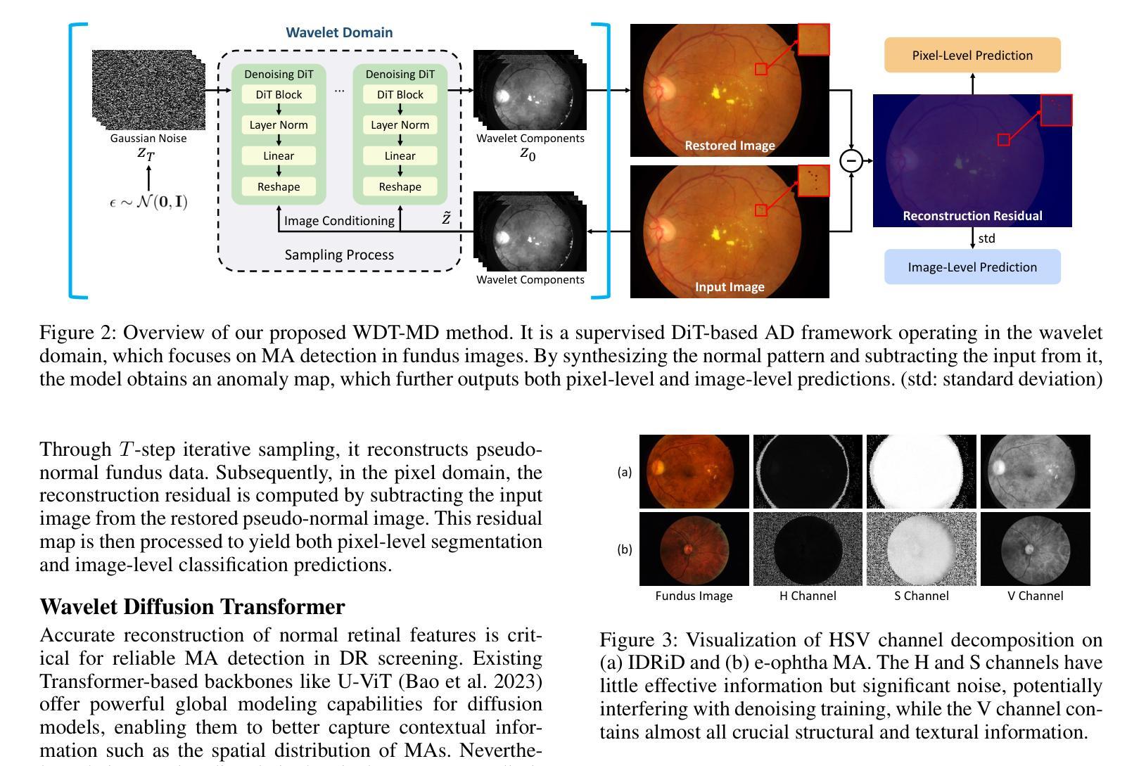 - 结合扩散Transformer全局建模和多尺度小波分析,优化正常视网膜特征的重建。