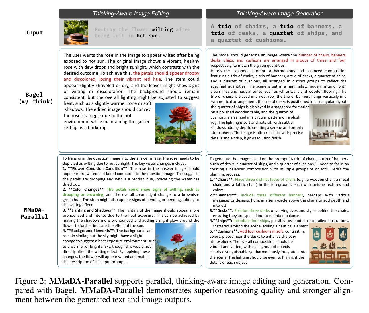 - MMaDA-Parallel框架实现文本和图像在生成过程中的持续双向交互。
