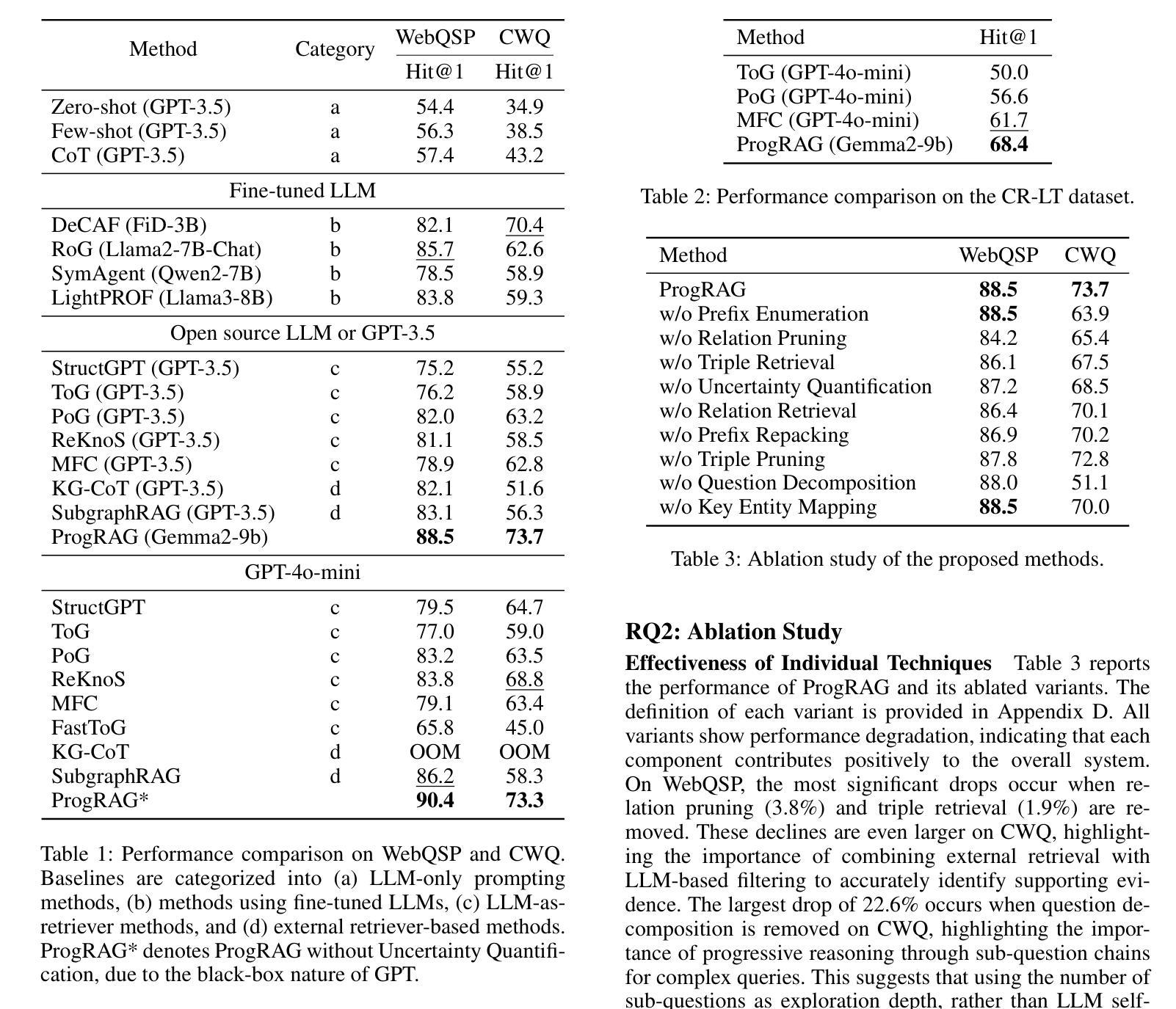 - ProgRAG利用外部检索器收集候选证据,并通过不确定性感知修剪进行精炼。