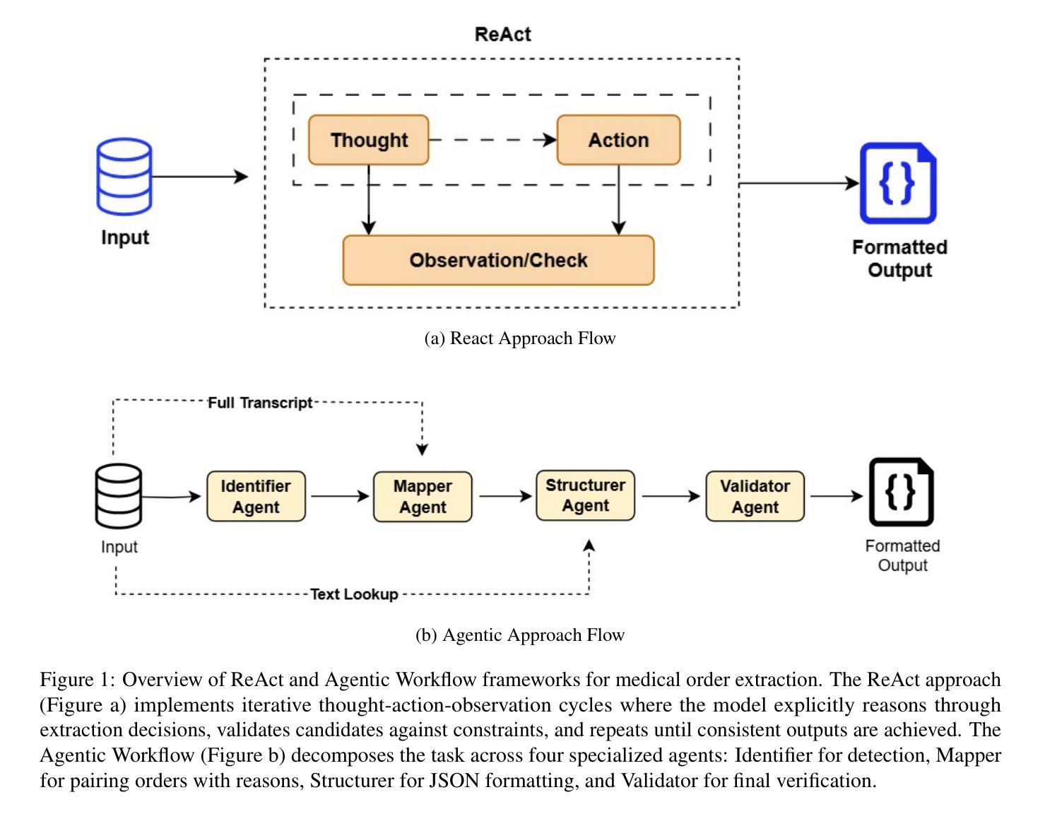 本文介绍了团队在MEDIQA-OE-2025共享任务中的提交内容。团队探究了MedGemma这一新的领域特定开源语言模型在结构化订单提取中的表现,并系统地评估了三种不同的提示范式:直接的一站式方法、侧重于推理的ReAct框架以及多步骤代理工作流程。实验表明,尽管复杂的框架如ReAct和代理工作流程功能强大,但简单的一站式提示方法却在官方验证集上取得了最佳性能。作者认为,在手动注释的转录中,复杂的推理链可能导致过度思考并引入噪音,使直接方法更具稳健性和效率。这项工作为在不同数据条件下进行临床信息提取时选择合适提示策略提供了宝贵见解。