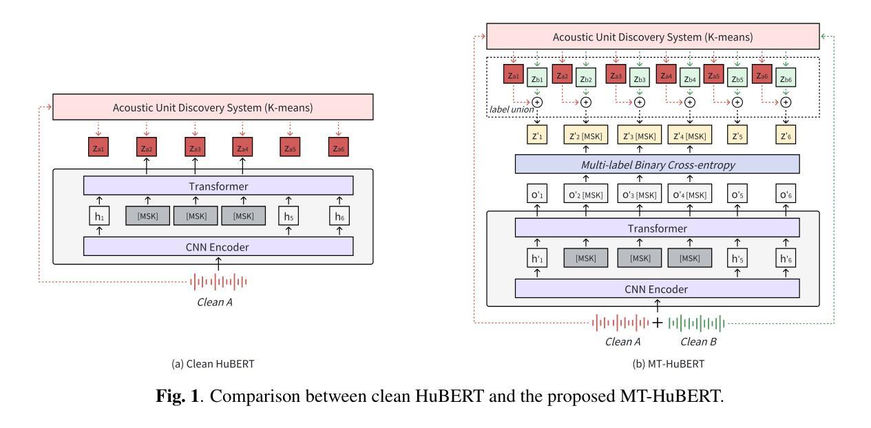 - MT-HuBERT以自监督的方式预测各个组成部分信号的纯净声学单元。