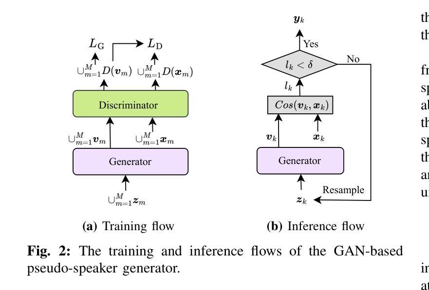 借助将语音分解为内容、说话者和韵律的语音生成框架,语音匿名化是通过用伪说话者的嵌入向量替换原始说话者的嵌入向量来实现的。在这个框架中,伪说话者的生成是一个基本挑战。现有的伪说话者生成方法在伪说话者的唯一性方面显示出局限性,从而限制了它们在保护语音隐私方面的有效性。此外,基于现有模型的方法计算成本较高。尤其在大规模场景下生成大量伪说话者时,唯一性和计算效率低下的问题变得更加显著。为此,本文提出了一个伪说话者生成框架,该框架在前馈架构中建立了从说话人身份指数到说话人向量的映射,称为IDMap。具体来说,该框架分为两个模型:IDMap-MLP和IDMap-Diff。实验是在小型和大型评估数据集上进行的。在LibriSpeech数据集上的小型规模评估验证了所提IDMap框架在提高伪说话者的唯一性、提高语音隐私保护能力的同时,降低了计算成本的有效性。在MLS和Common Voice数据集上的大规模评估进一步证明了IDMap框架在随着伪说话者数量增加时,其语音隐私保护能力的稳定性方面的优越性。音频样本和开源代码可在https://github.com/VoicePrivacy/IDMap找到。