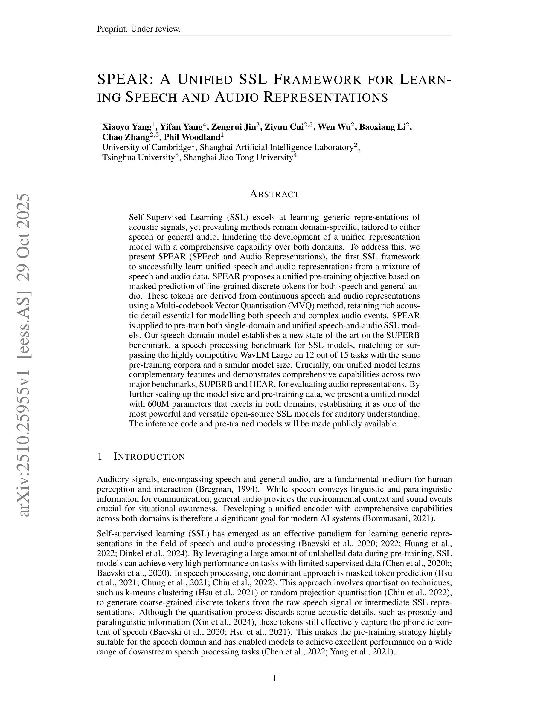 - SPEAR是首个成功学习统一语音和音频表示的自监督学习框架。