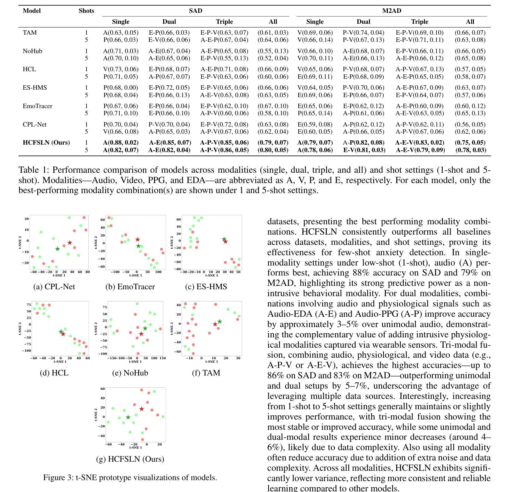 - HCFSLN是一种新型的FSL框架,用于多模态焦虑检测,集成了语音、生理信号和视频数据。