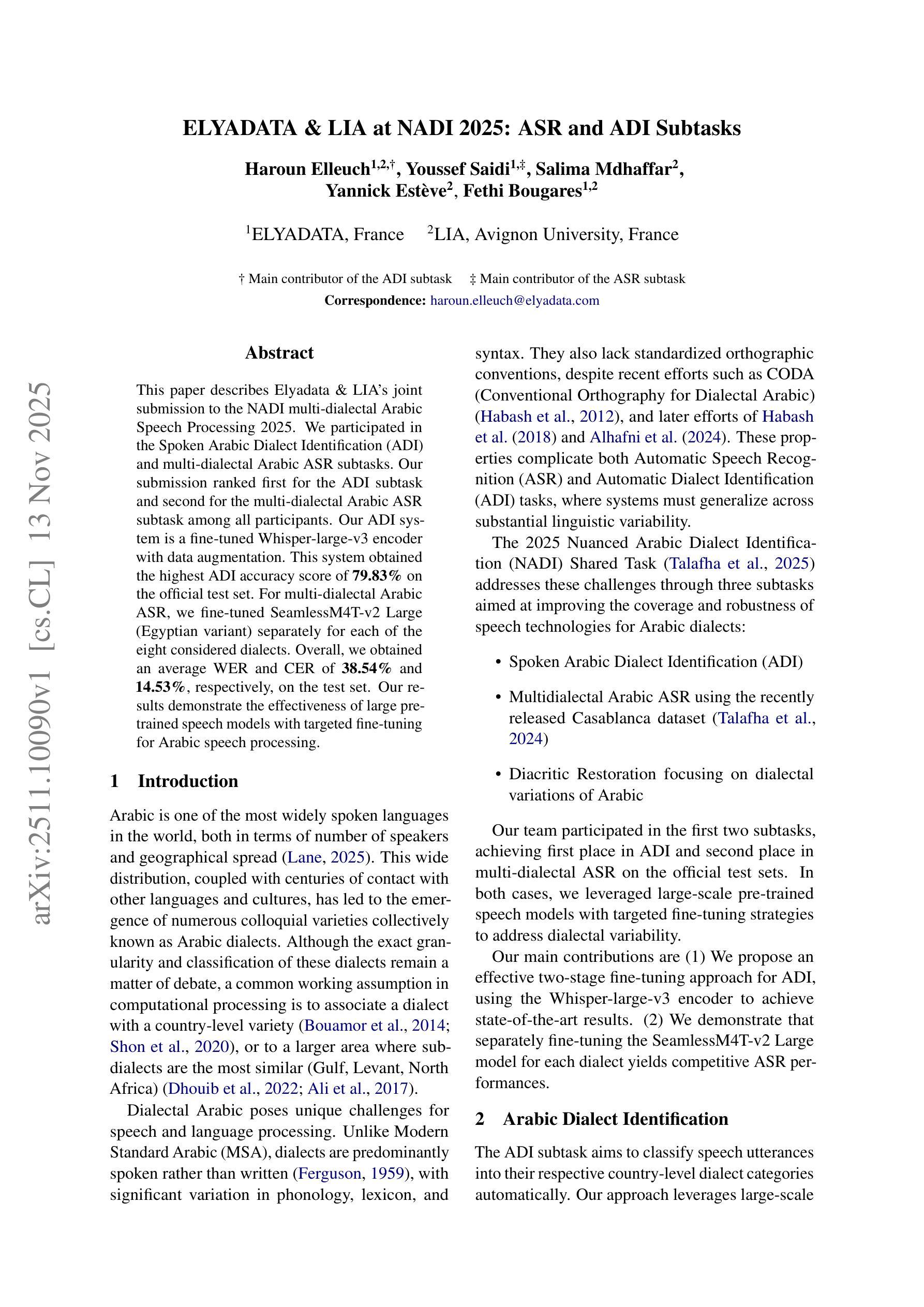 - Elyadata和LIA在多方言阿拉伯语语音处理领域的杰出贡献。