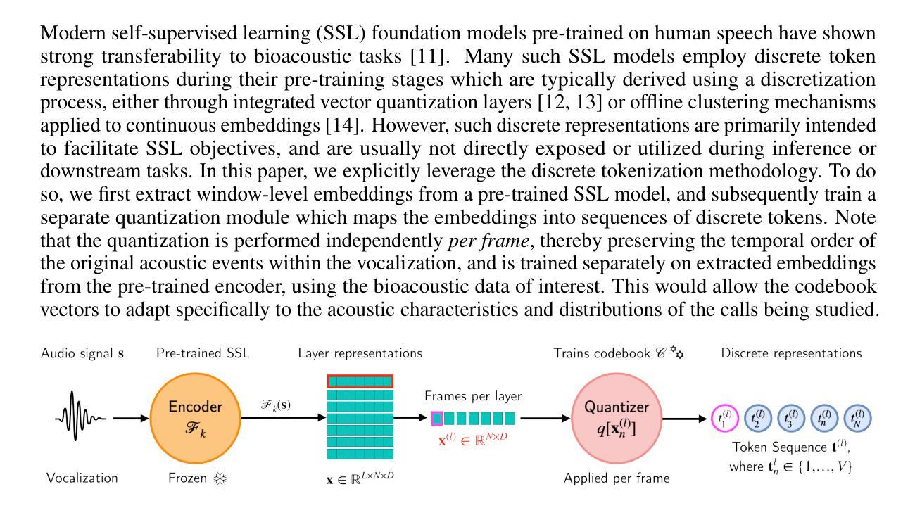 - 向量量化的令牌序列作为一种替代特征表示方法,在利用动物叫声中的序列信息方面展现出潜力。