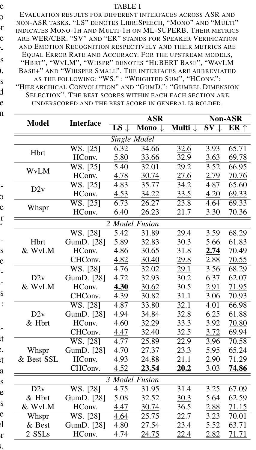 - 提出了一个融合接口模块,实现跨多个上游语音模型的融合。