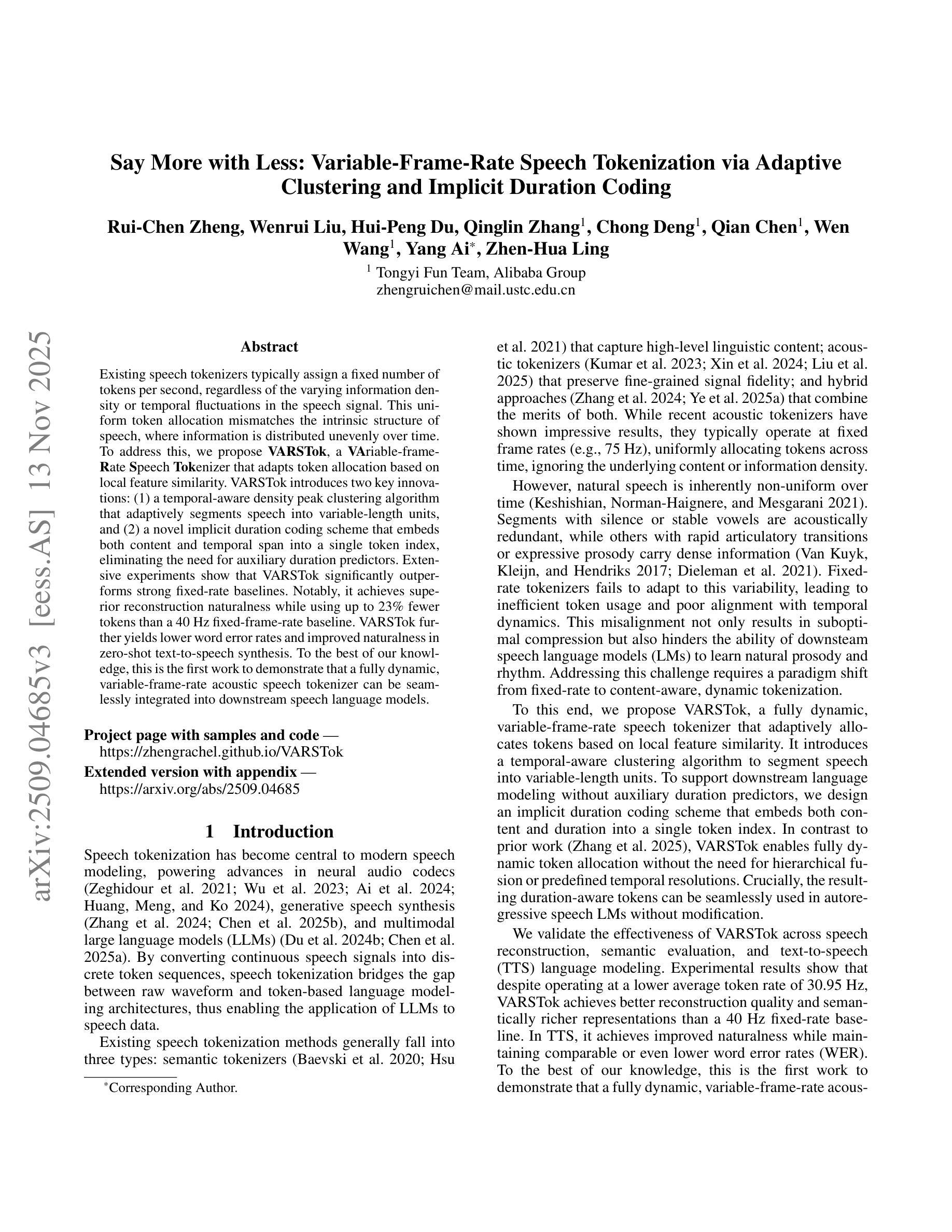 - VARSTok提出基于局部特征相似性的可变帧率语音分词器来解决这一问题。